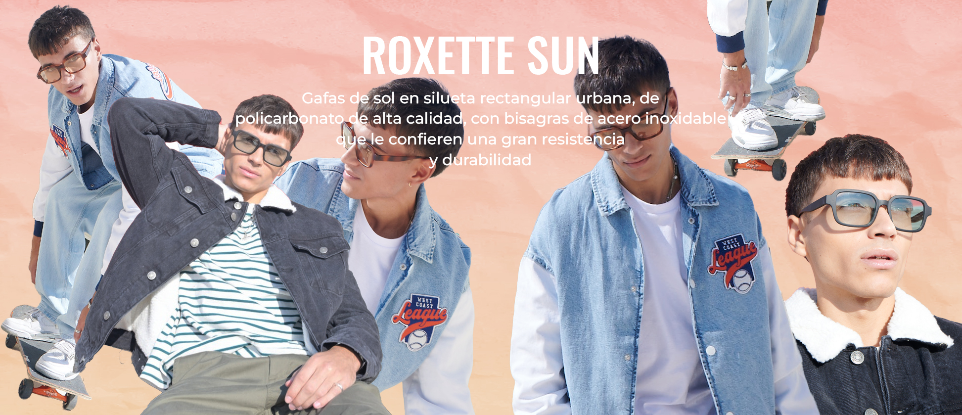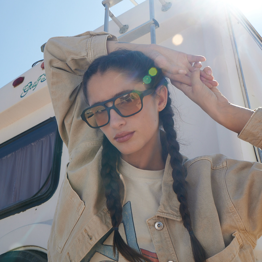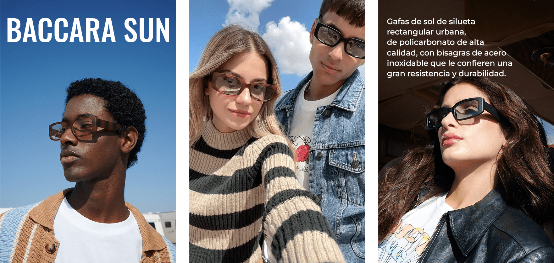 Gafas de sol de silueta rectangular urbana, de policarbonato de alta calidad, con visagras de acero inoxidable que le confieren una gran resistencia y durabilidad.