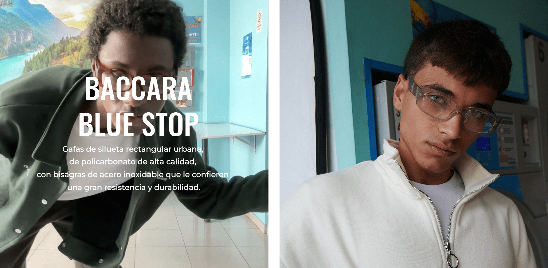 Gafas de silueta cuadrada urbana, de policarbonato de alta calidad, con visagras de acero inoxidable que le confieren una gran resistencia y durabilidad.