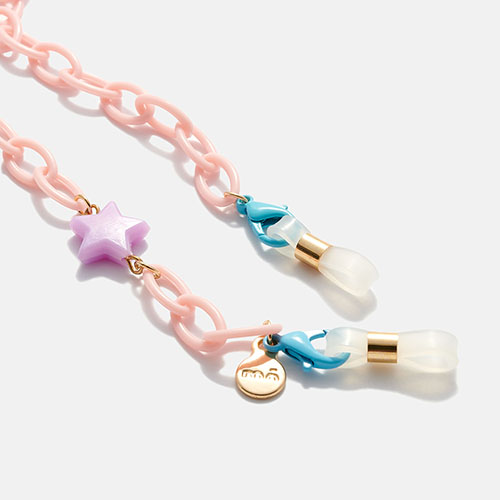 Cordón exclusivo diseñado con la cadena de color rosa y abalorio en forma de estrella de color morado, para un look alegre, desenfadado y juvenil, cuenta con cabezales ajustables que permite adaptarse a cualquier tipo de gafa, tanto de ver como de sol.Además de cuelga gafas, también se puede lucir como accesorio. Para ello, basta con retirar las gomas de los extremos y usar los mosquetones como cierre de tu nueva pulsera o collar...¡Aprovecha todas sus posibilidades!