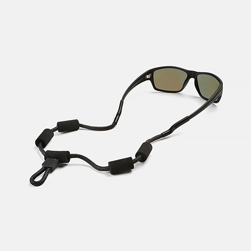 Cordón de inspiración surfera en tono negro, fabricado en polyester y piezas de goma ajustables