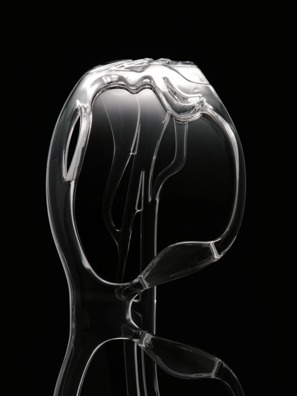 Las gafas han sido concebidas mediante una colaboración innovadora, donde la inteligencia artificial fue entrenada con nuestros descubrimientos, experimentos y texturas creadas a partir de biomateriales.