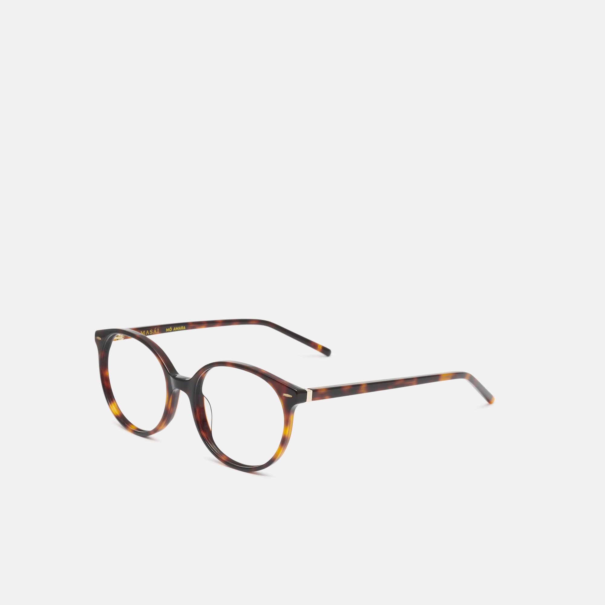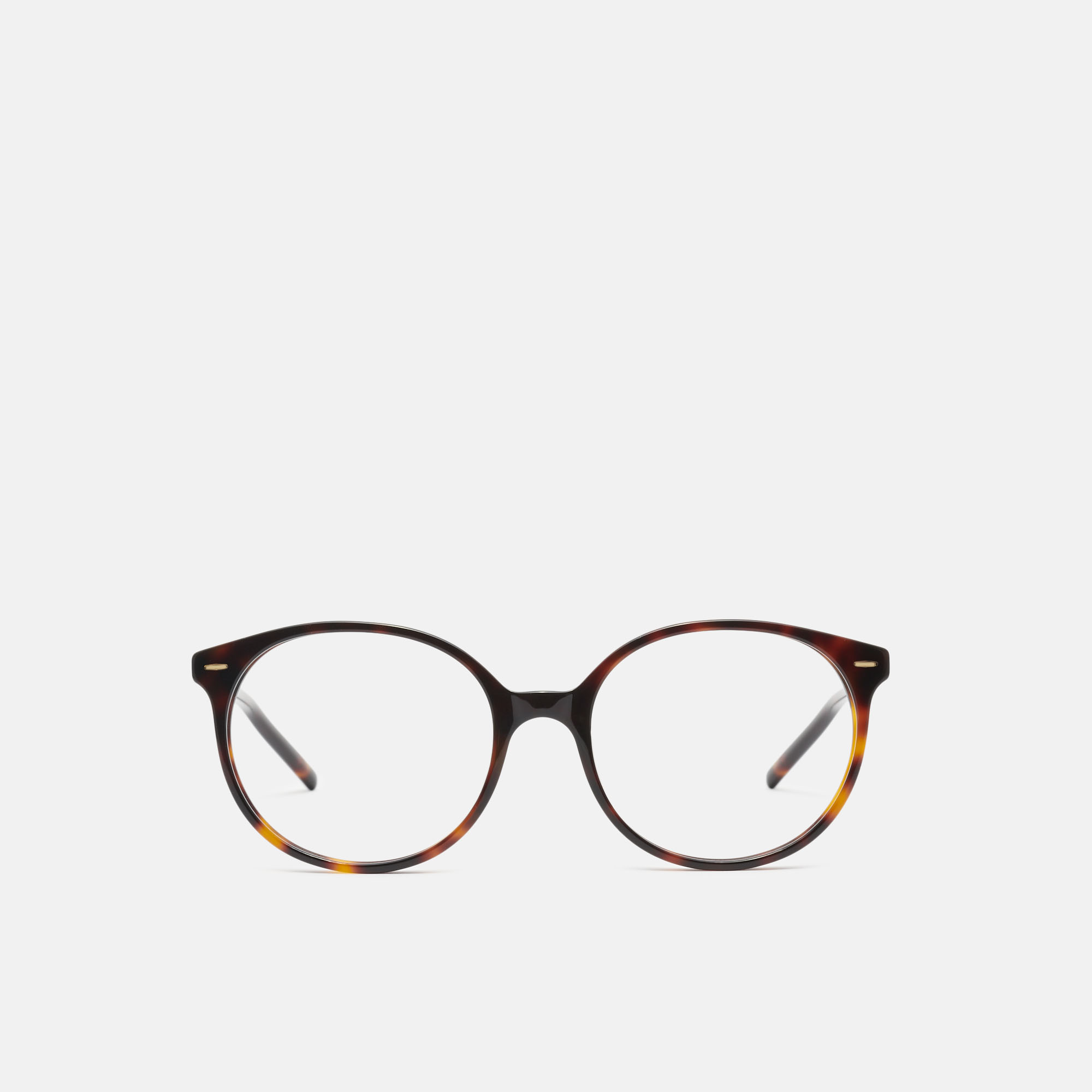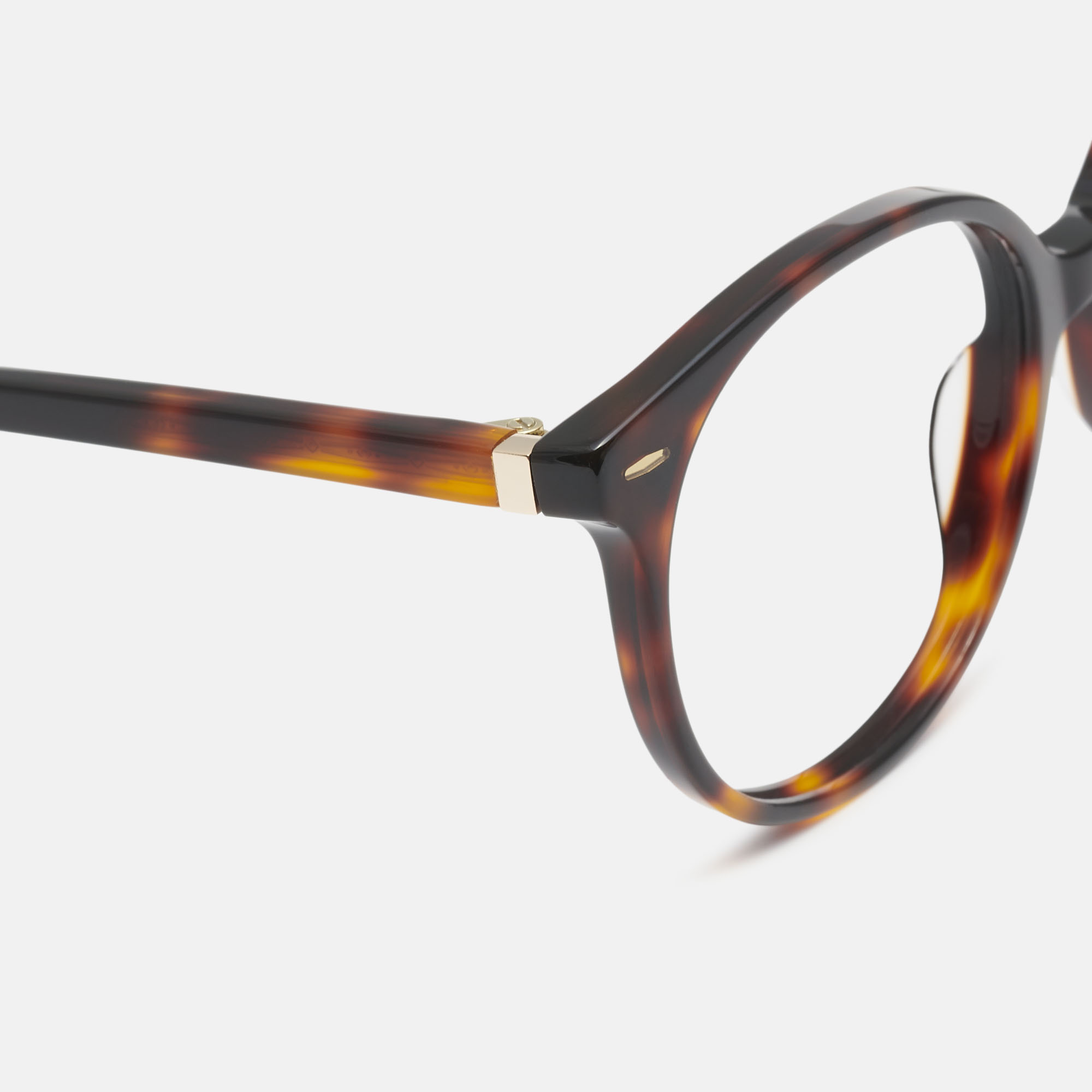 Gafas de ver para mujer con montura redondeada que evoca al estilo clásico y contemporáneo. Su acetato color carey de espesor fino, aporta ligereza. Destacan los detalles metálicos en colordorado en el frente y en la varilla, y el toque metálico interior con grabado único.