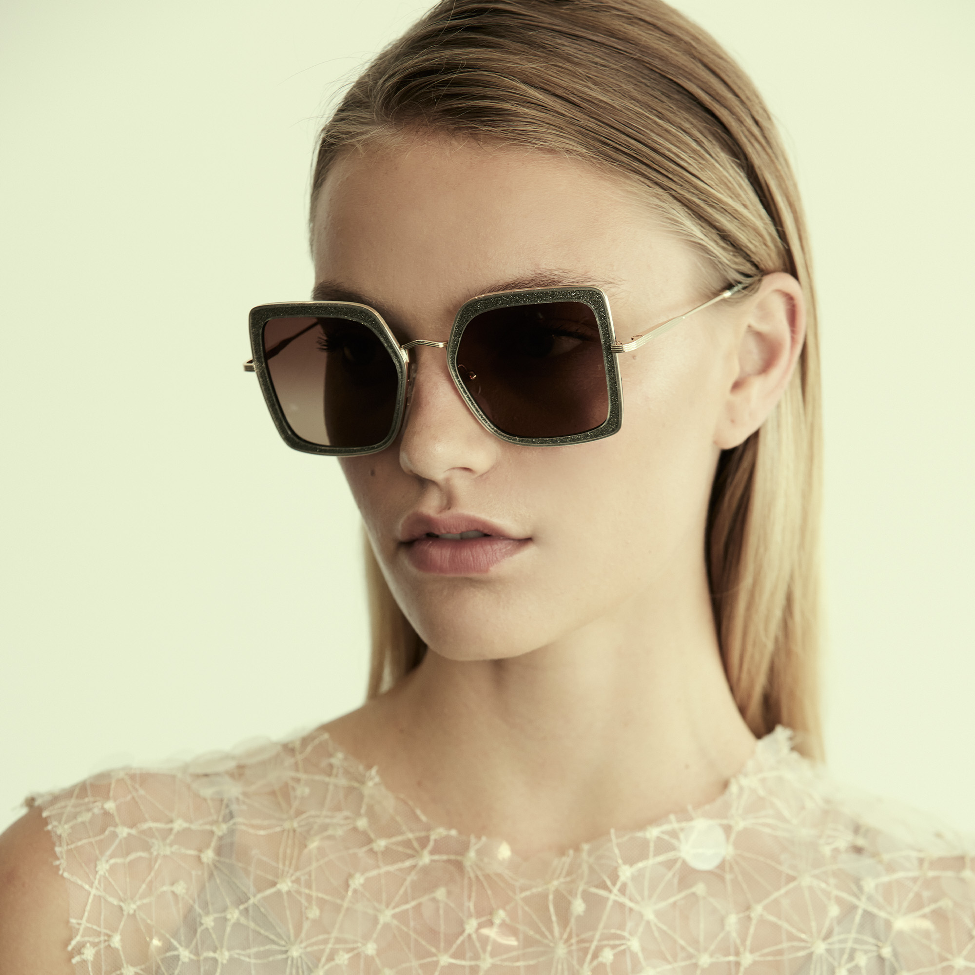 El modelo Mó Federal de estilo sofisticado en tamaño oversize pero ligero está fabricado en acetato y metal rayado. La lente degradada y polarizada aporta elegancia.