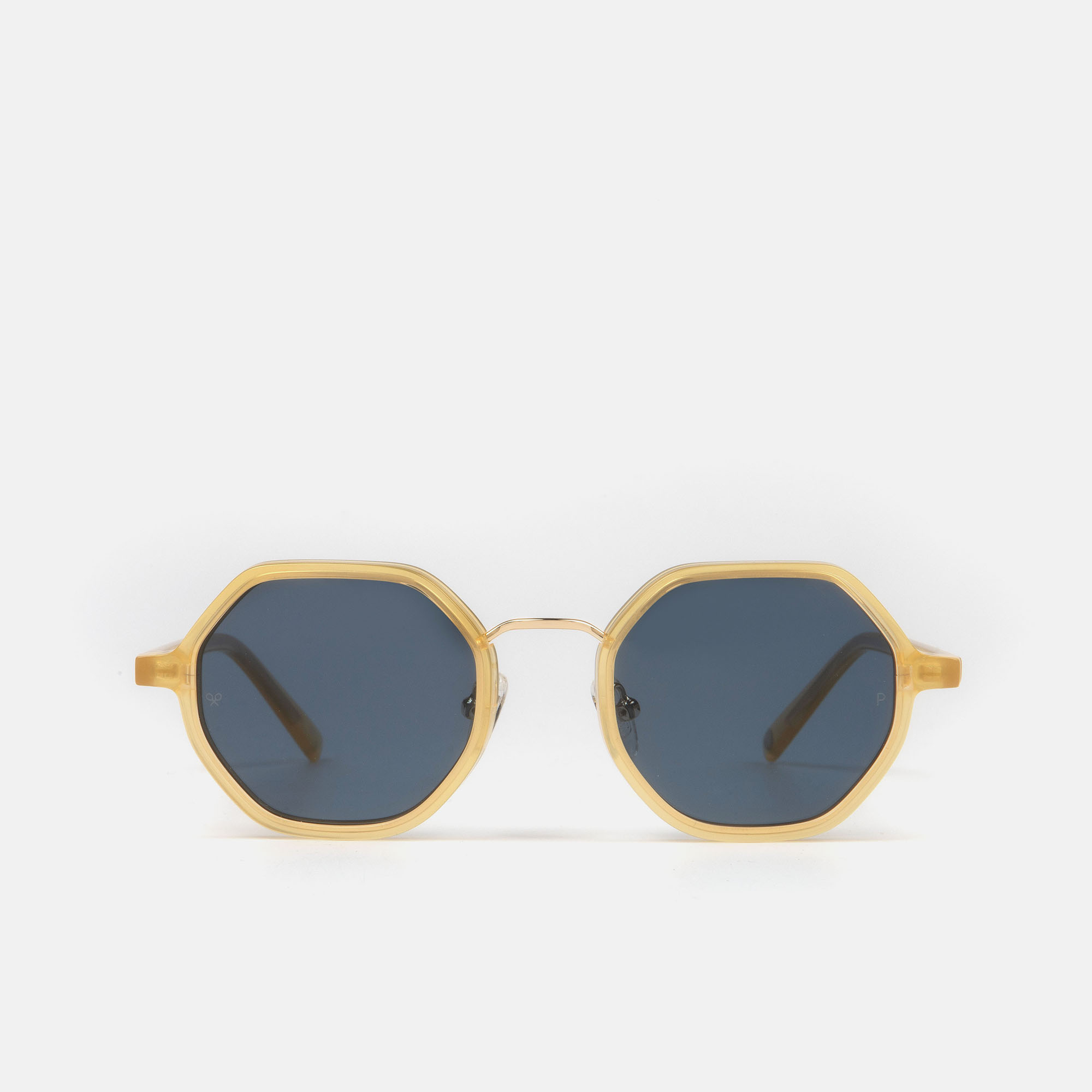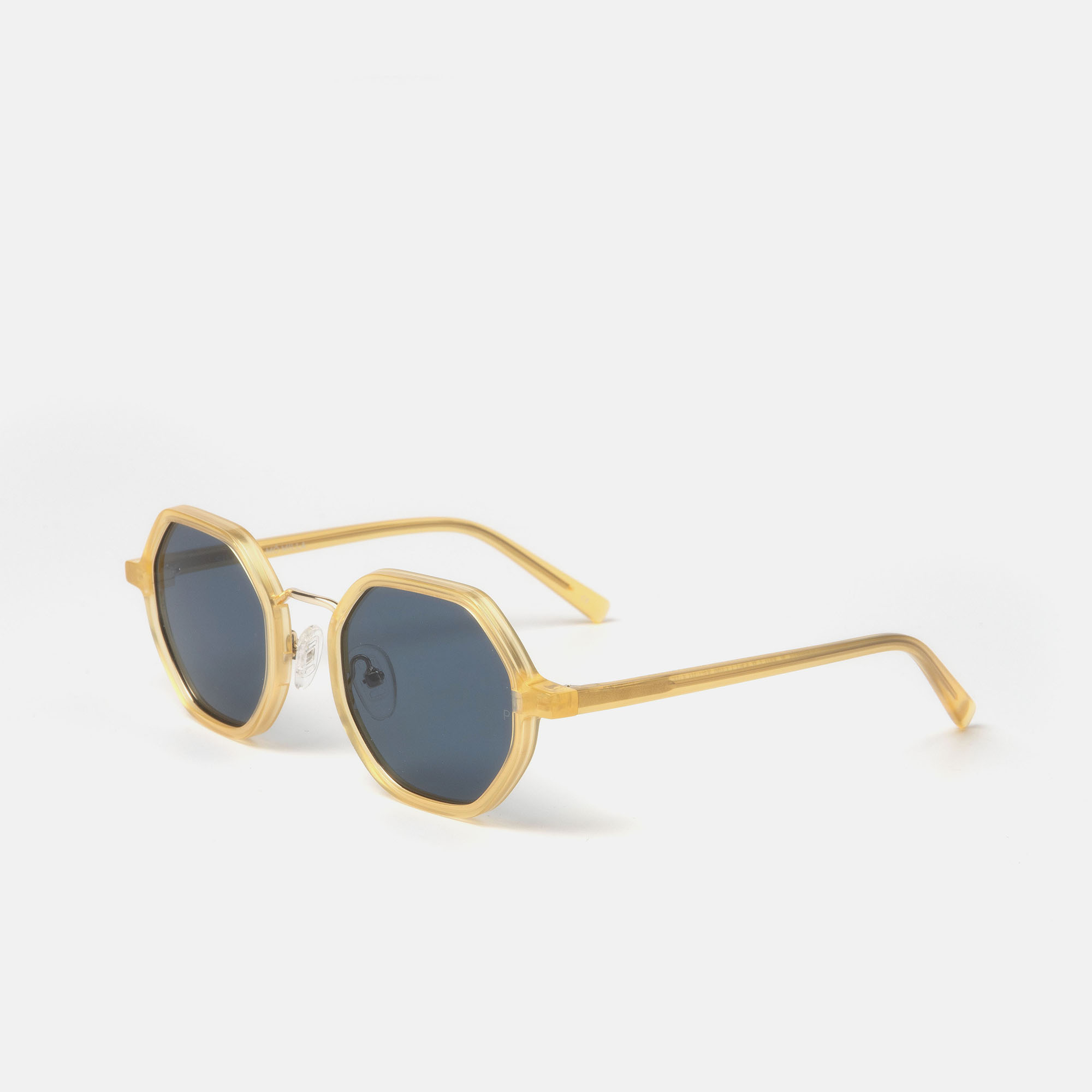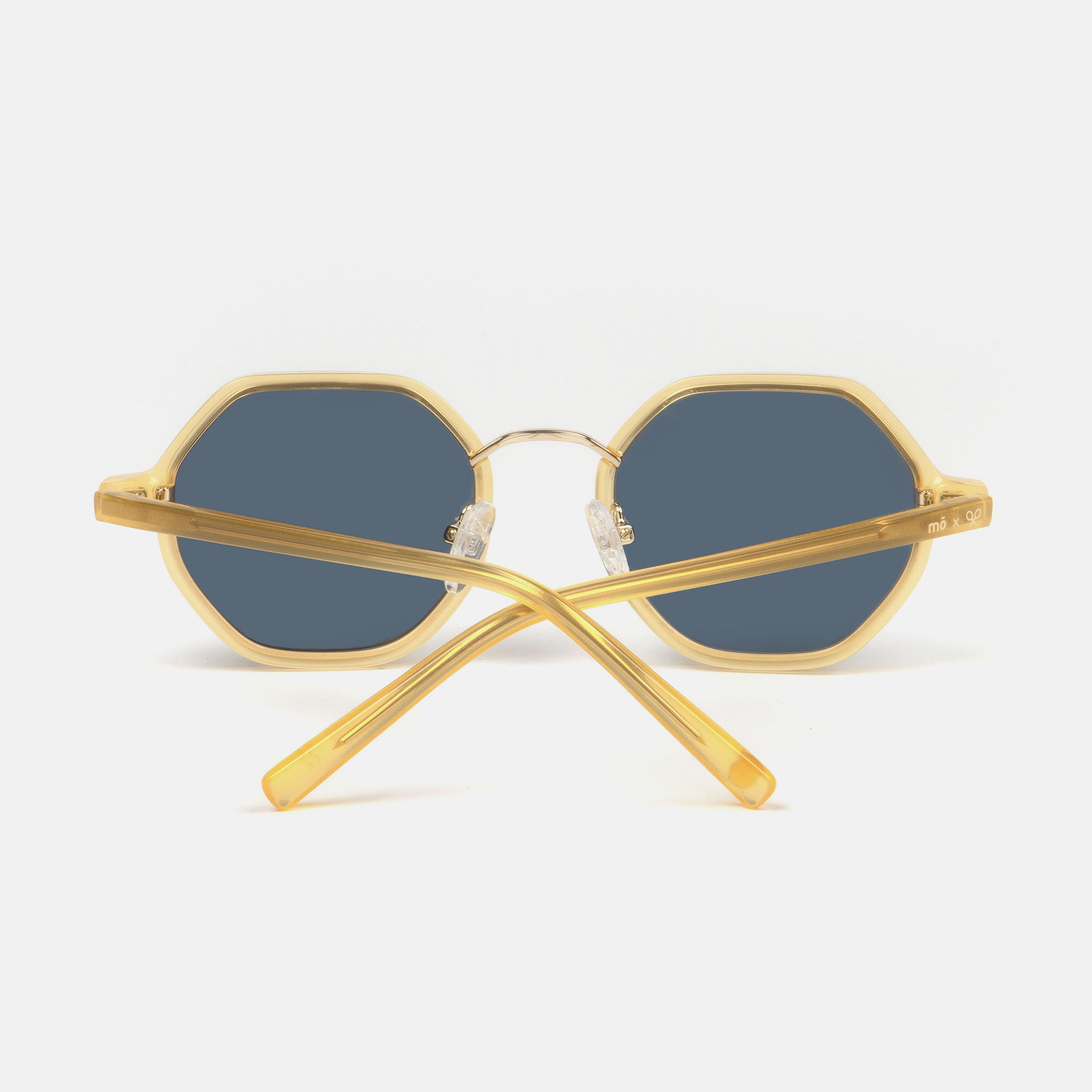 El modelo para niña Mó Milla de la colección de Kids de Mó x Silbon. Su montura geométrica hecha de acetato amarillo con puente de metal combina con sus lentes polarizadas y aporta sofisticación a este diseño perfecto para los más pequeños. Sus varillas tienen pequeños detalles metálicos con logo que completan este divertido diseño.