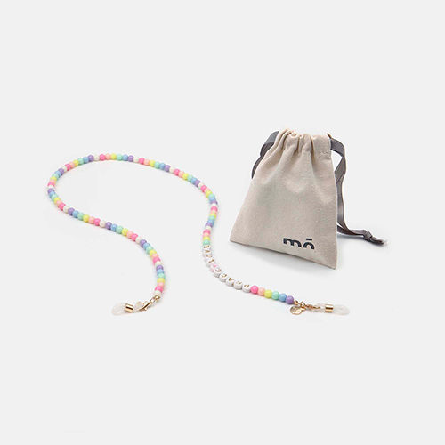 Cordón exclusivo diseñado con abalorios de colores,para un look alegre, desenfadado y juvenil, cuenta con cabezales ajustables que permite adaptarse a cualquie tipo de gafa, tanto de ver como de sol.Además de cuelga gafas, también se puede lucir como accesorio. Para ello, basta con retirar las gomas de los extremos y usar los mosquetones coo cierre de tu nueva pulsera o collar...¡Aprovecha todas sus posibilidades!