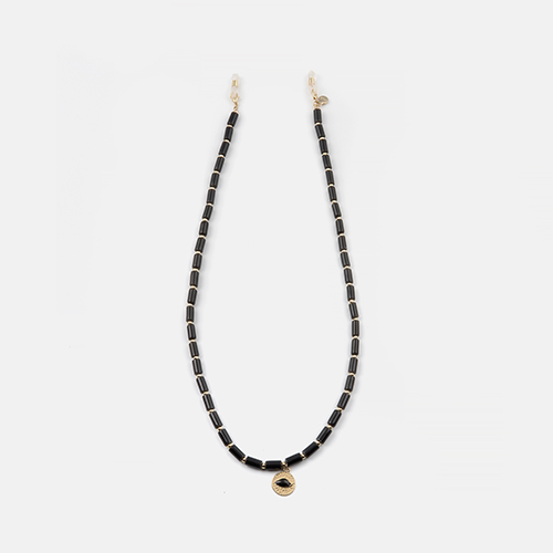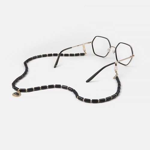 Exclusiva cadena, diseñada con abalorios cerámicos en color negro y cabezales ajustables. Gracias a su elegante diseño, combina con cualquier tipo de gafa, tanto de ver como de sol.Además de cuelga gafas, también se puede lucir como accesorio. Para ello, basta con retirar las gomas de los extremos y usar los mosquetones como cierre de tu nueva pulsera o collar...¡Aprovecha todas sus posibilidades!