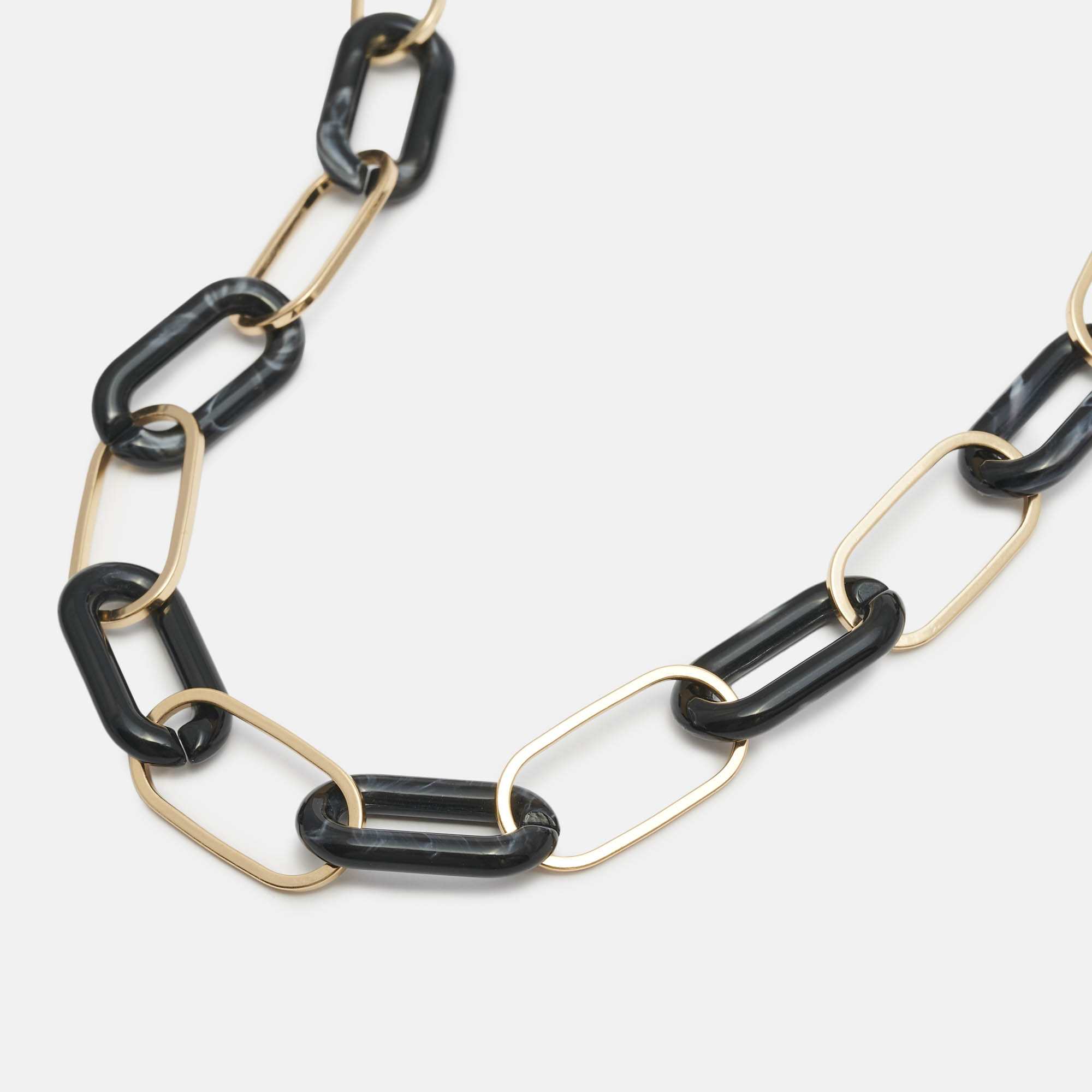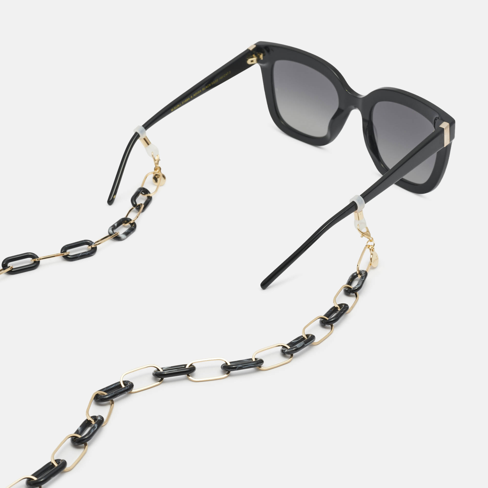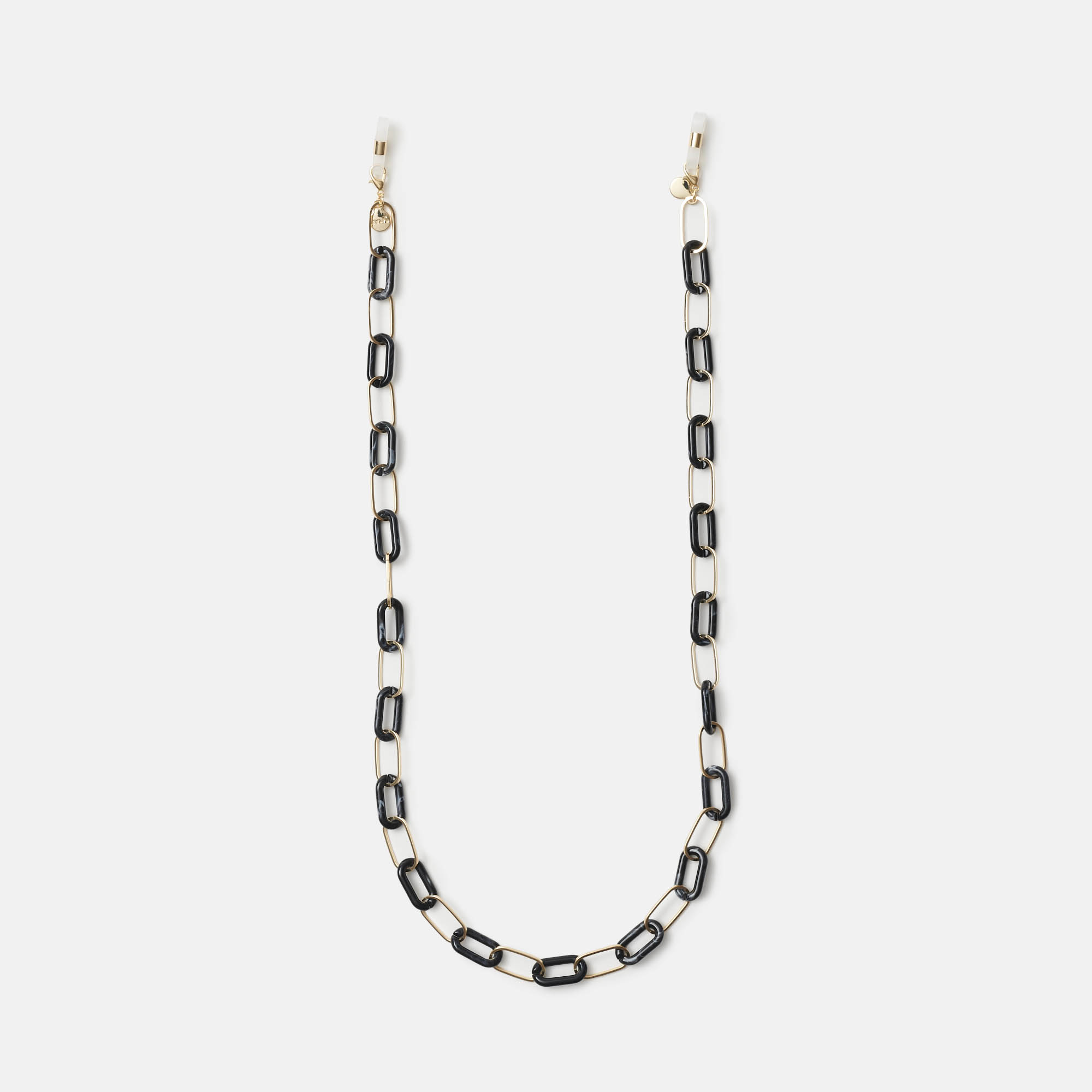 Estilosa cadena de mujer con eslabones de color dorado y negro. Gracias a su elegante diseño y su practicidad, combina con cualquier tipo de gafa, tanto de ver como de sol. Largo total: 70 cm.