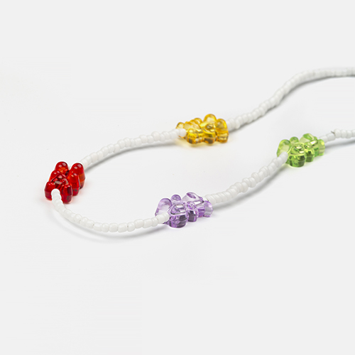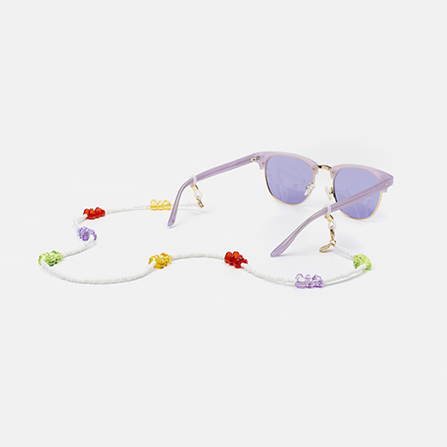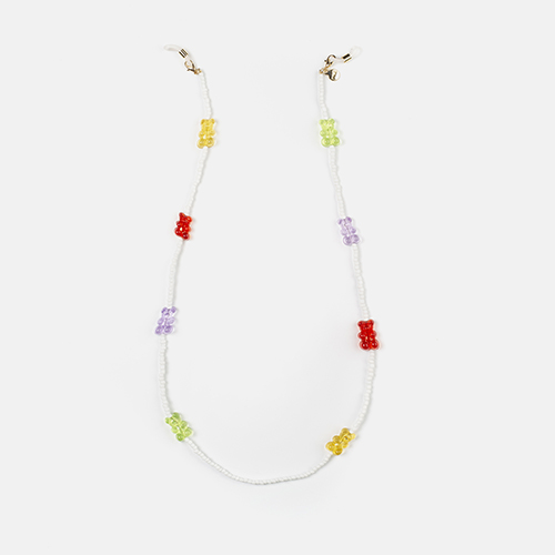 Cordón exclusivo de abalorios con forma de ositos de gominola, para un look desenfadado y alegre, cuenta con cabezales ajustables. Gracias a su elegante diseño, combina con cualquier tipo de gafa, tanto de ver como de sol.