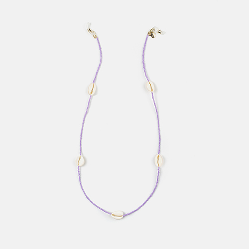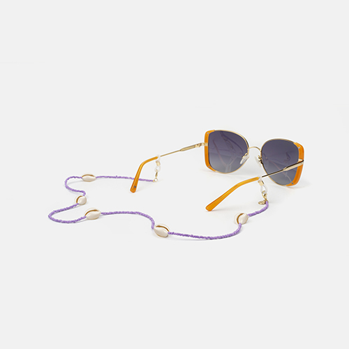 Cordón exclusivo de abalorios morado, con cuentas de conchas, para un look desenfadado y alegre, cuenta con cabezales ajustables. Gracias a su elegante diseño, combina con cualquier tipo de gafa, tanto de ver como de sol.Además de cuelga gafas, también se puede lucir como accesorio. Para ello, basta con retirar las gomas de los extremos y usar los mosquetones como cierre de tu nueva pulsera o collar...¡Aprovecha todas sus posibilidades!