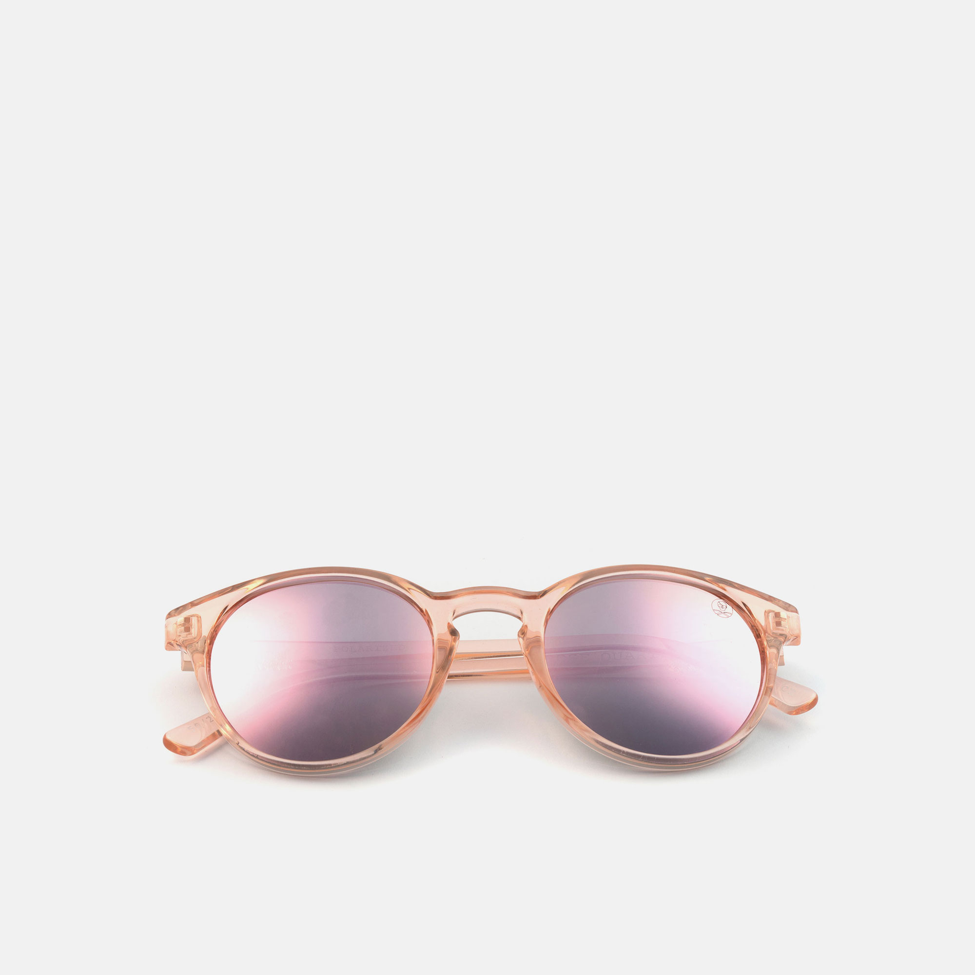 The lenses are mirrored and polarised in a rose quartz colour, made from polycarbonate, a light, durable material that meets all optical quality standards.