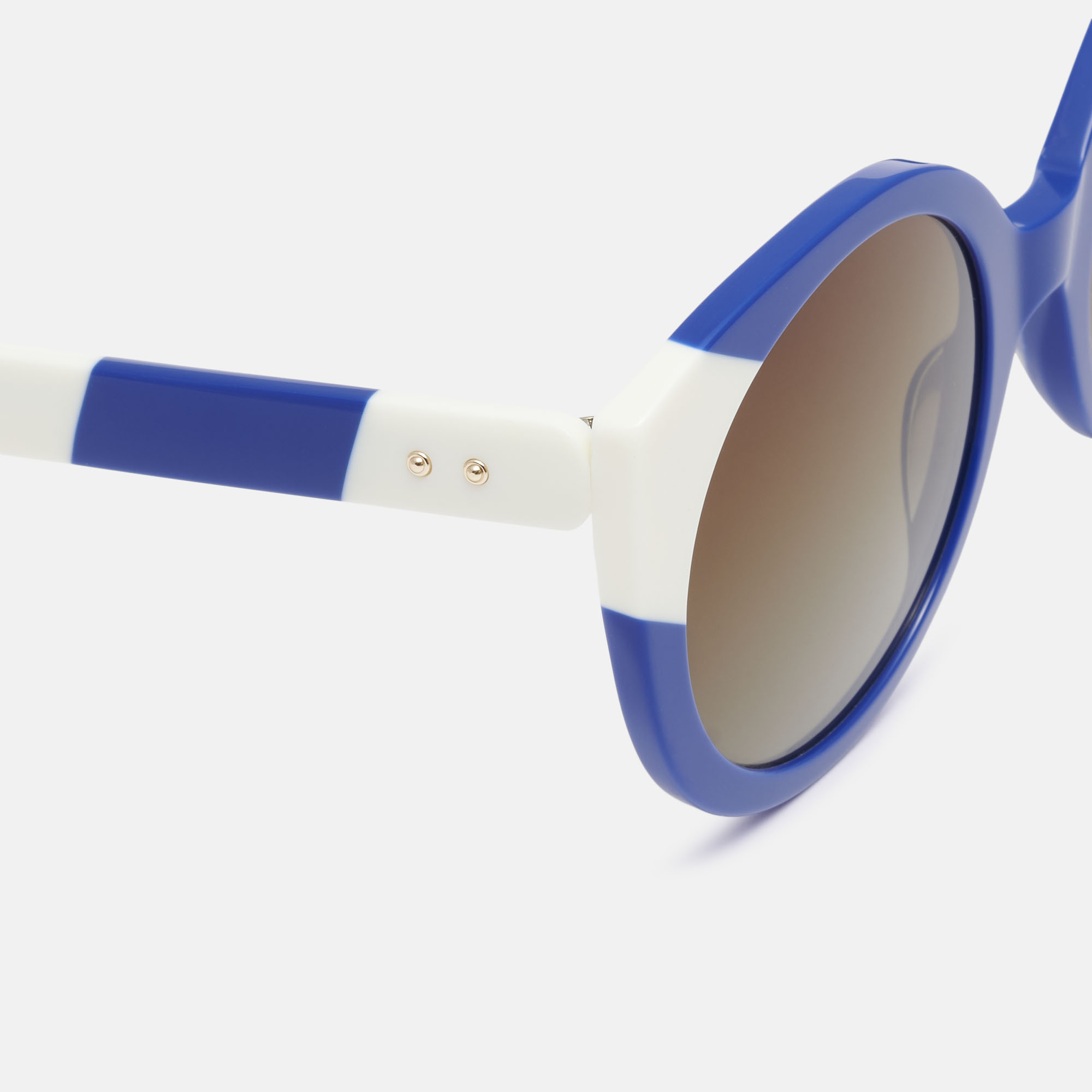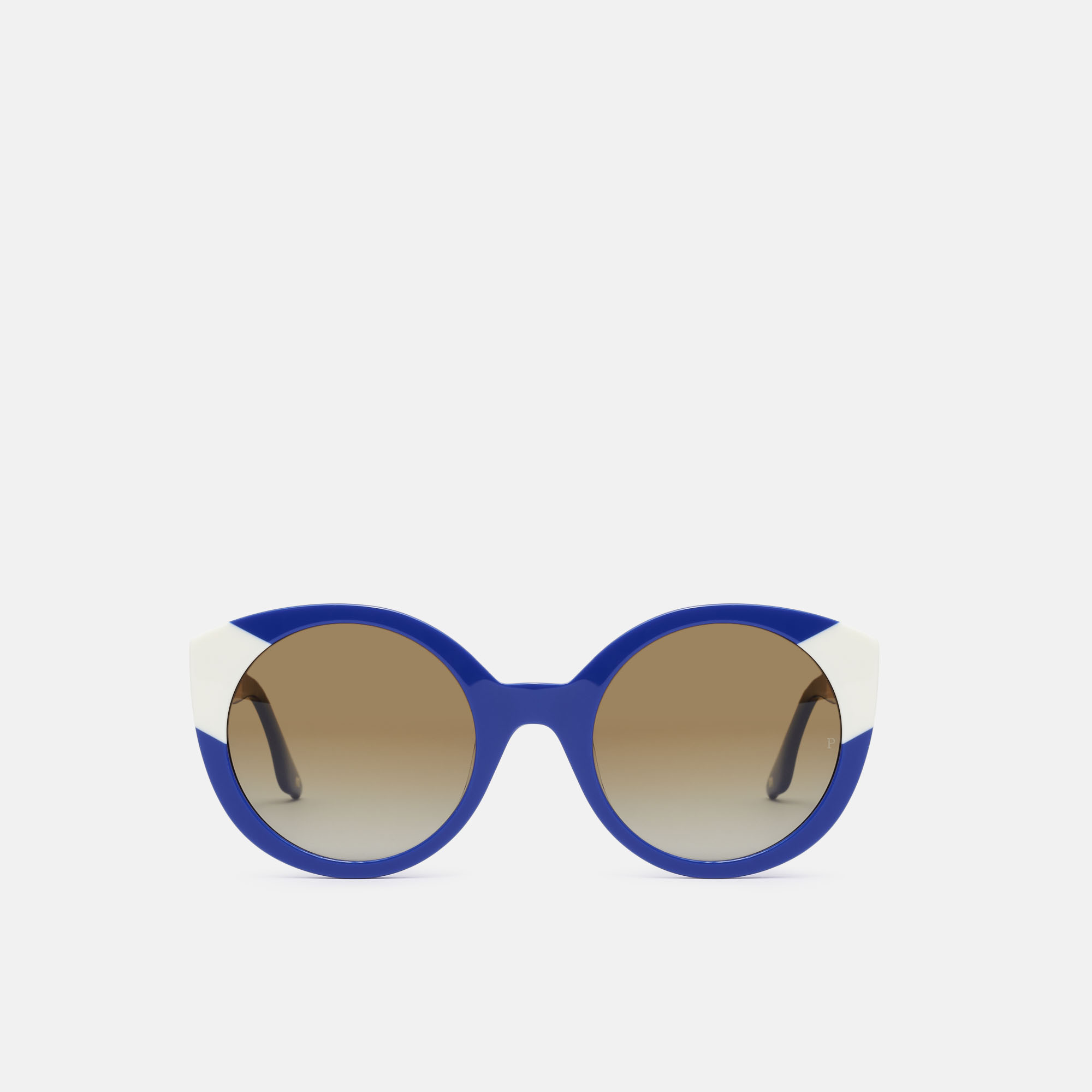 Gafa de sol de mujer con forma redondeada ligeramente oversize y con toque cat-eye. De estilo atemporal y favorecedor a cualquier rostro, los cortes de diferentes colores de acetato aporta frescura y sofitsticación. Las lentes están polarizadas.
