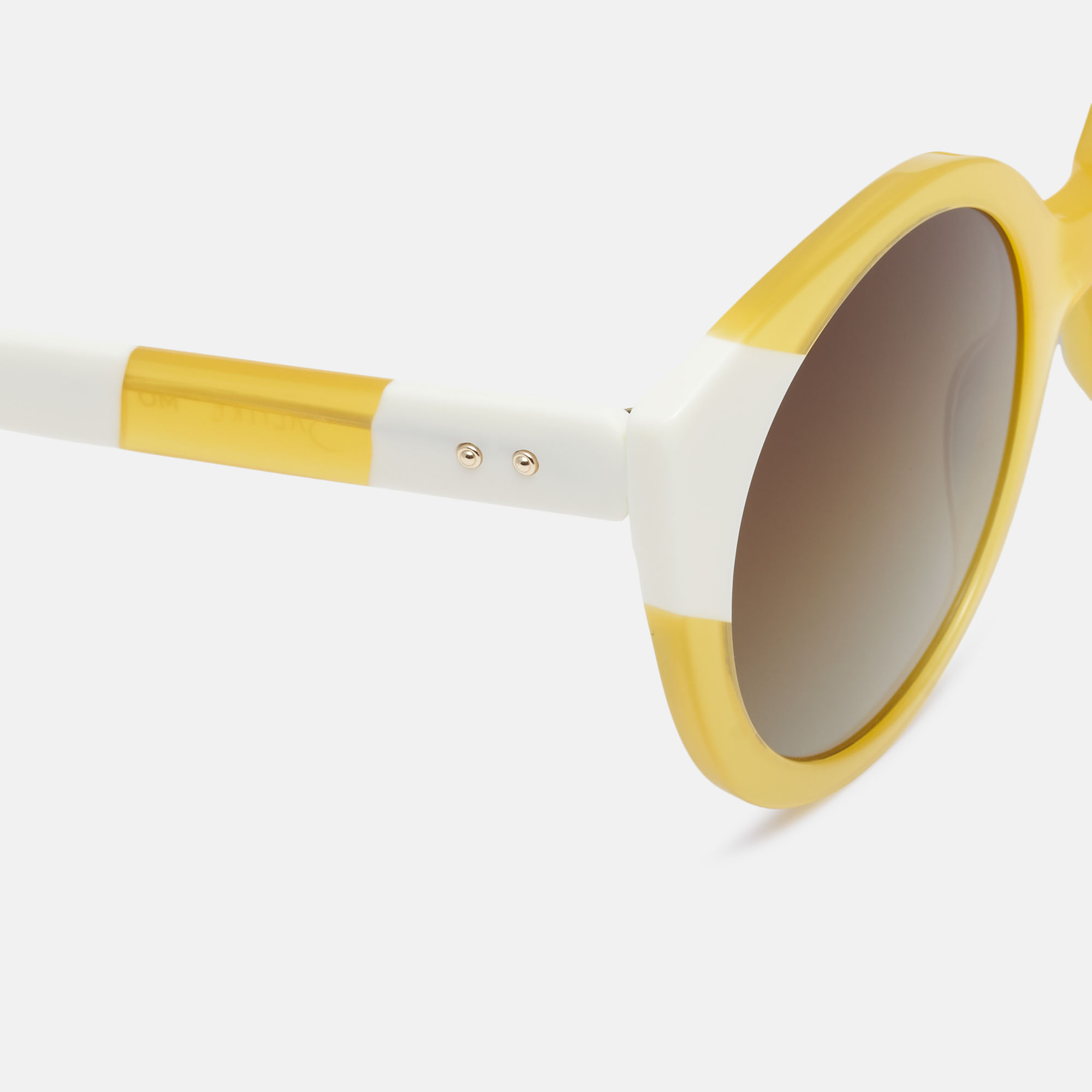 Gafa de sol de mujer con forma redondeada ligeramente oversize y con toque cat-eye. De estilo atemporal y favorecedor a cualquier rostro, los cortes de diferentes colores de acetato aporta frescura y sofitsticación. Las lentes están polarizadas.