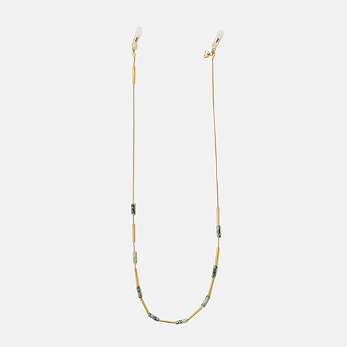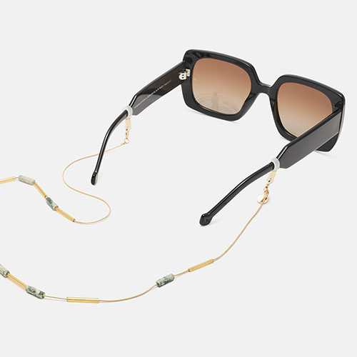 Excluisva cadena,diseñada con abalarorios efecto piedra y cabezales ajustables.Graciasd a su elegante diseño,combina con cualquier tipo de gafa,tanto de ver como de sol.Además, se cuelga gafas, también se puede lucir como accesorio. Para ello, basta con retirar las gomas de los extremos y usar los mosquetonescomo cierre de tu nueva pulsera o collar...¡Aprovecha todas sus posibilidades!