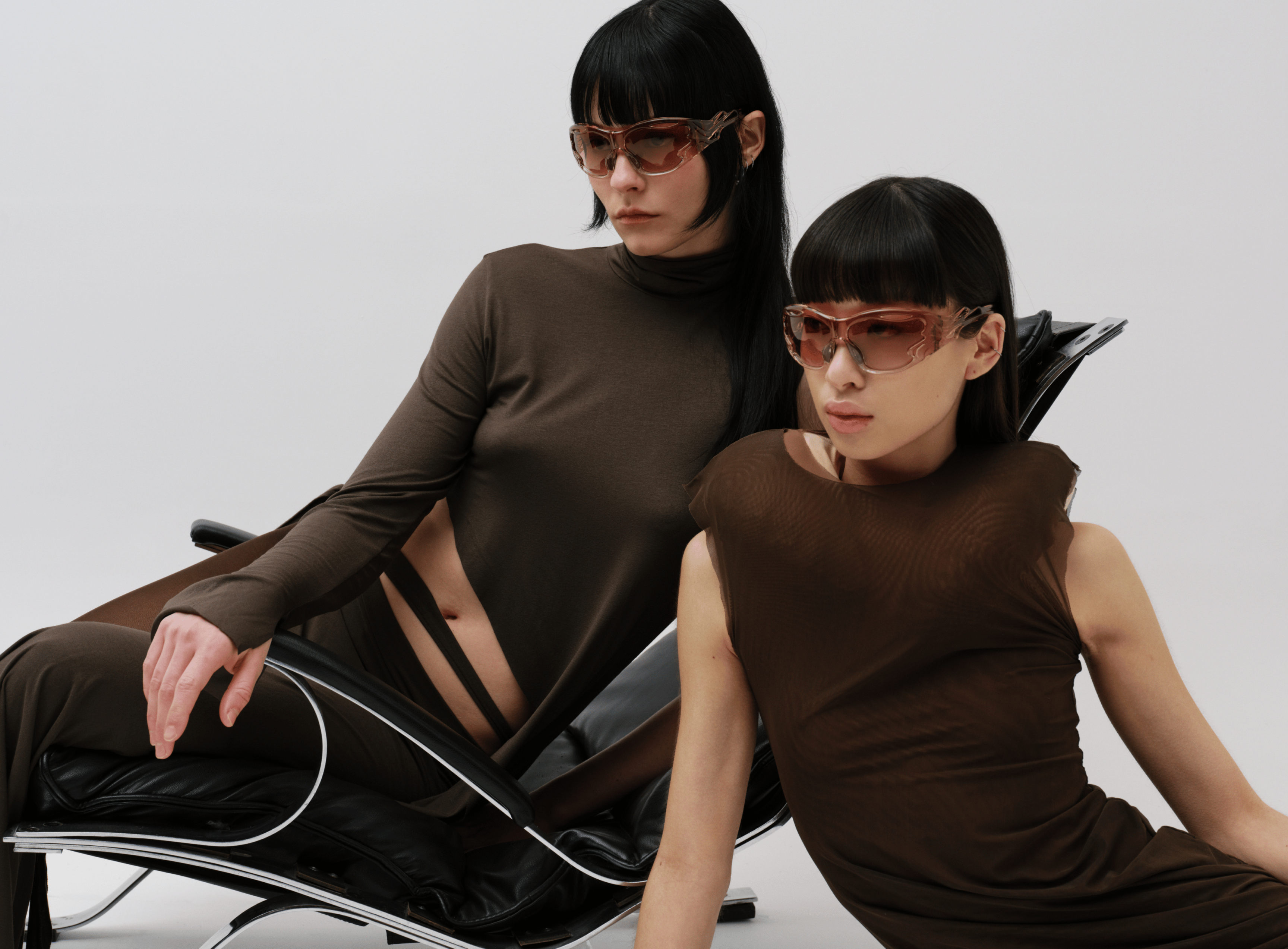 La colección MÓ X EVADE HOUSE incluye un modelo de gafa exclusivo disponible en tres colores: beige degradado, transparente y negro, capturando la esencia del estilo futurista y orgánico que define a la marca. Las formas entrelazadas e irregulares de las gafas evocan lo natural, mientras que las lentes ligeras y semitran.te y sostenible.