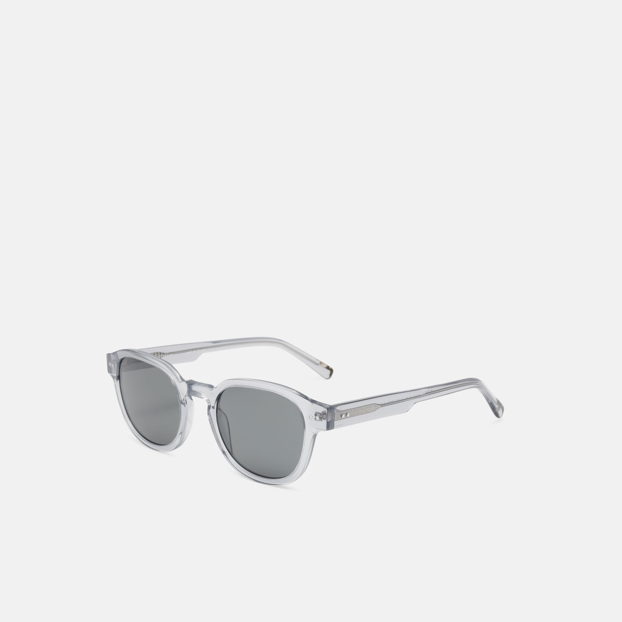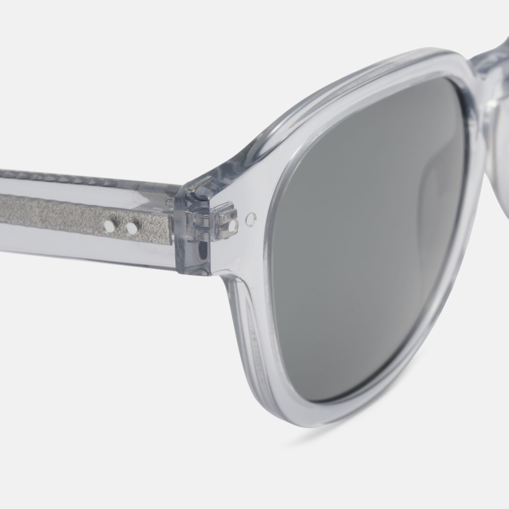 Gafas de sol de acetato gris con forma cuadrada y decoraciones metálicas en frente y varillas. Sus lentes grises polarizadas de alta calidad, proporcionan una visión más nítida y un mejor contraste.