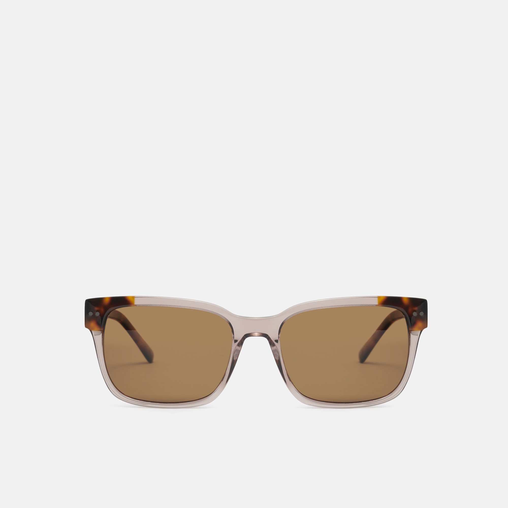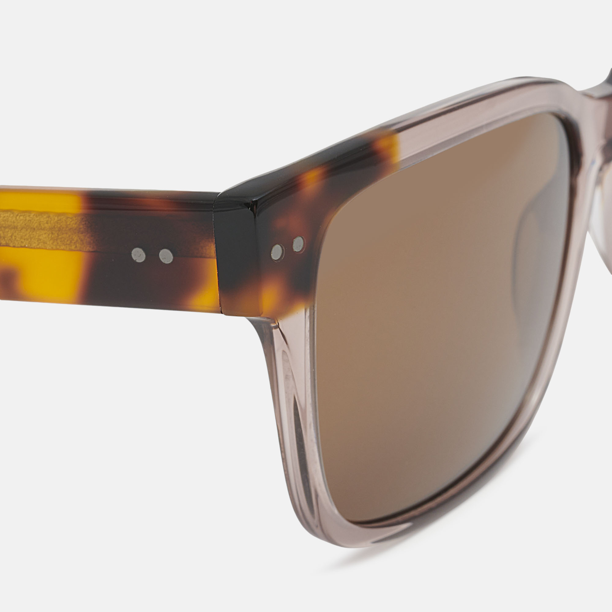 Gafas de sol de acetato marrón con forma cuadrada y decoraciones metálicas, contrasta el color carey en detalles del frente y varillas. Sus lentes marrones polarizadas de alta calidad, proporcionan una visión más nítida y un mejor contraste.