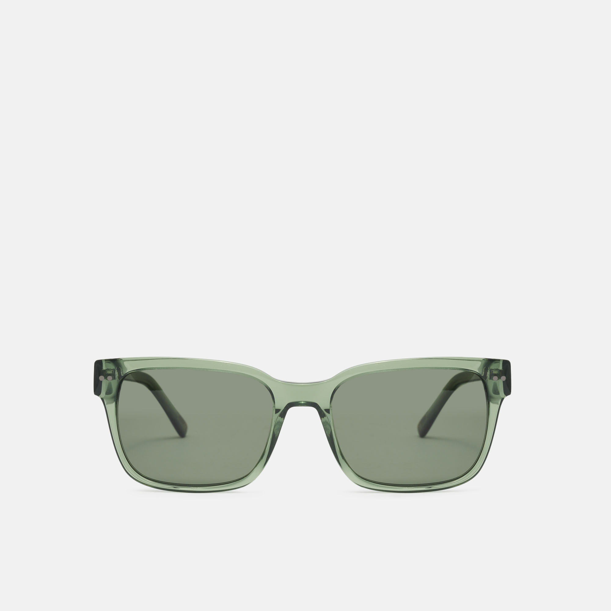Gafas de sol de acetato verde con forma cuadrada y decoraciones metálicas en frente y varillas. Sus lentes verdes polarizadas de alta calidad, proporcionan una visión más nítida y un mejor contraste.