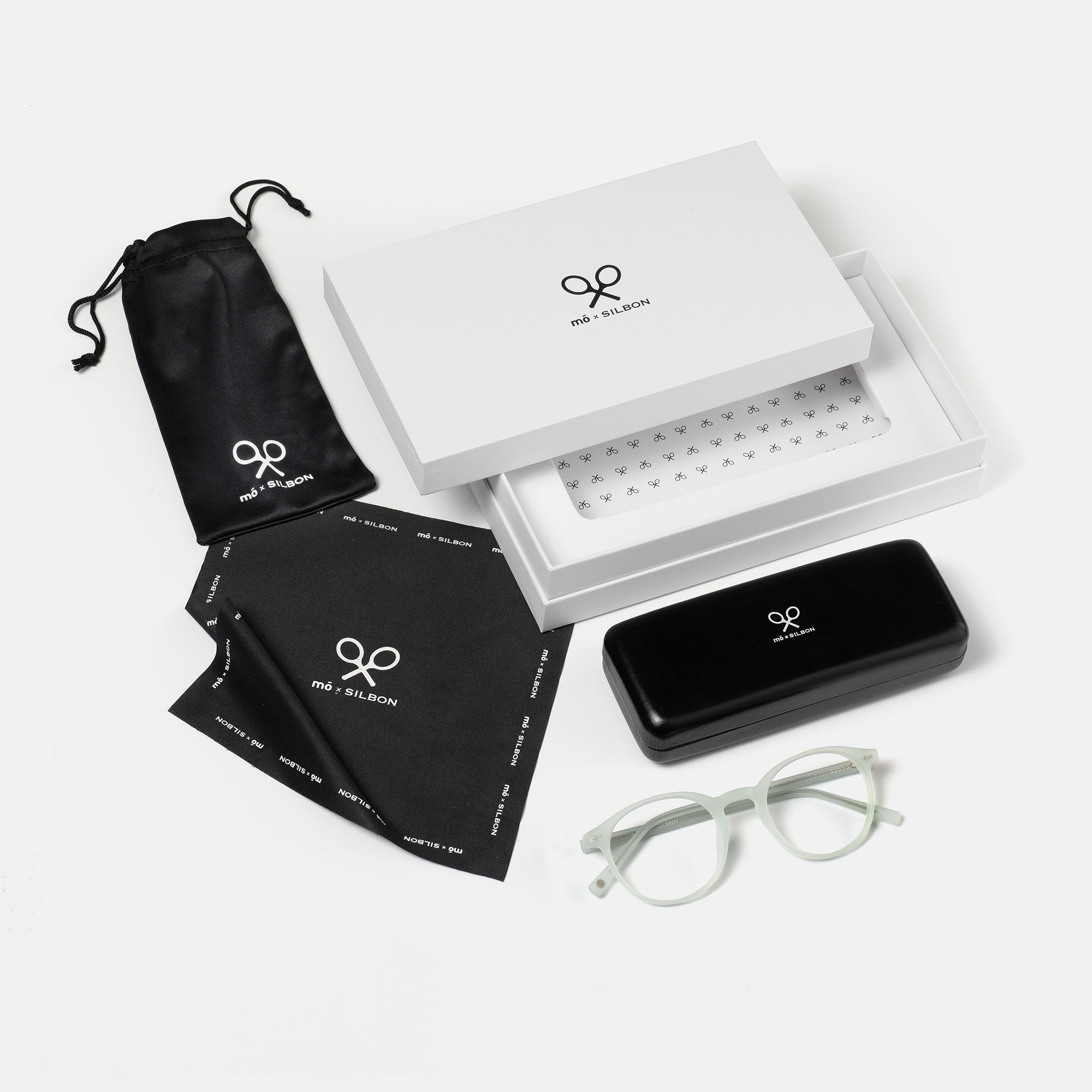 El modelo Mó Leroy de la colección Mo x Silbon es un modelo de graduado en acetato, clásico y atemporal, muy favorecedor para cualquier rostro. Las varillas están adornadas con sutiles detalles metálicos con el logo de Mó x Silbon, añadiendo un elemeto de lujo discreto.
