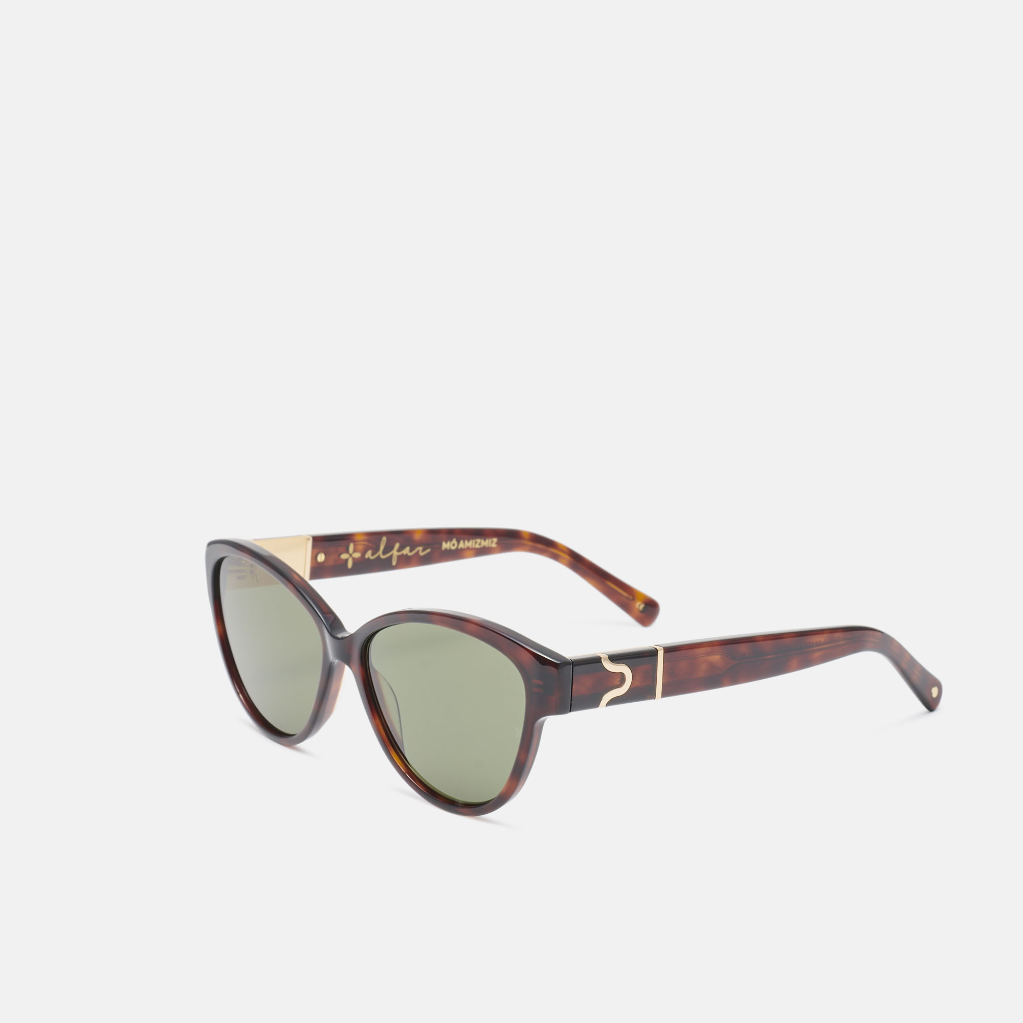 El modelo Mó Amizmiz de la colección Alfar con su forma cat-eye y su tamaño ajustado al rostro es favorecedor y atemporal. La varilla con detalle de estructura metálica es sofisticada y elegante.