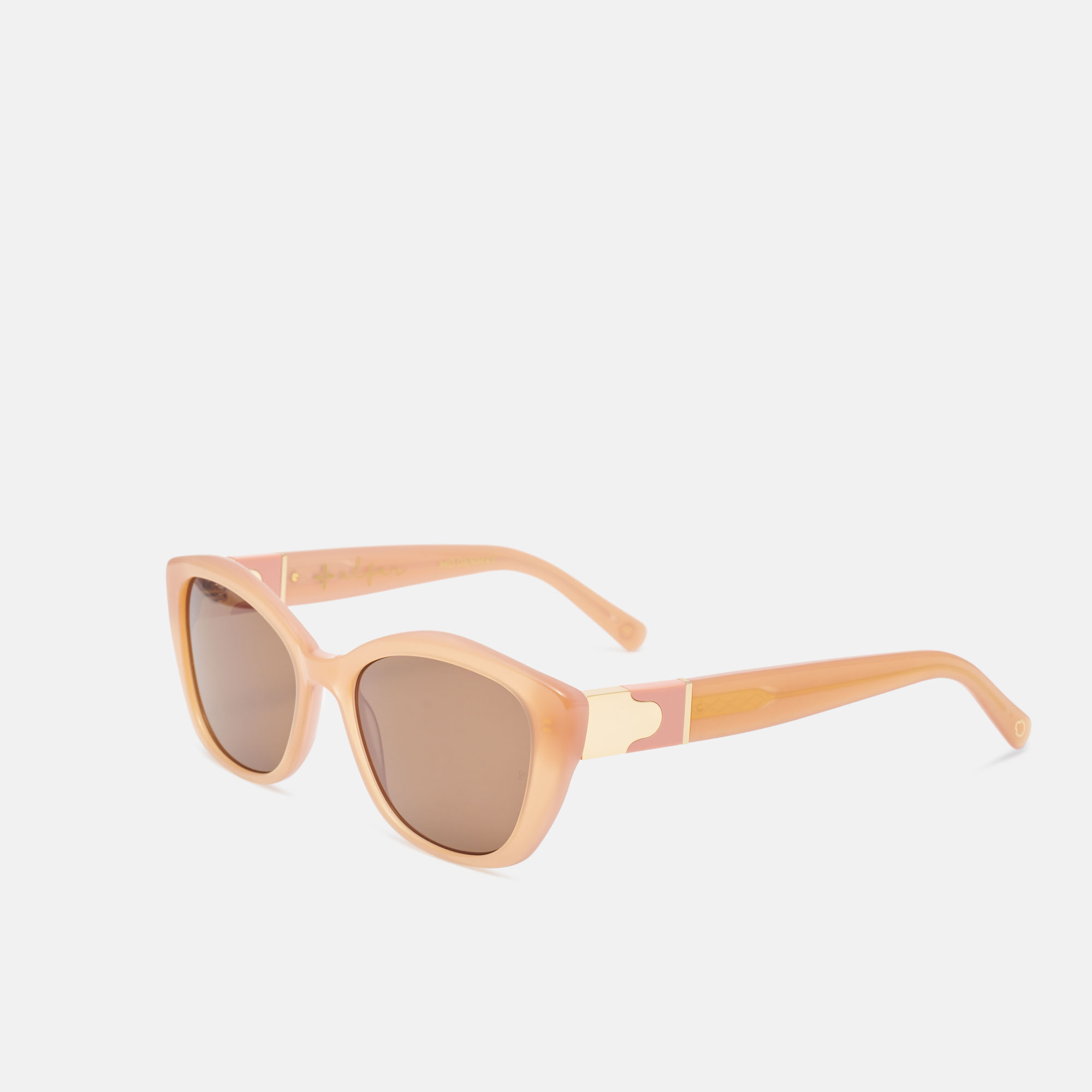 El modelo Mó Denmat de la colección Alfar con su forma cat-eye reversionada y su tamaño ajustado al rostro es favorecedor y atemporal . Diseñado en acetato, su varilla con estructura de metal aporta luz y sofisticación.