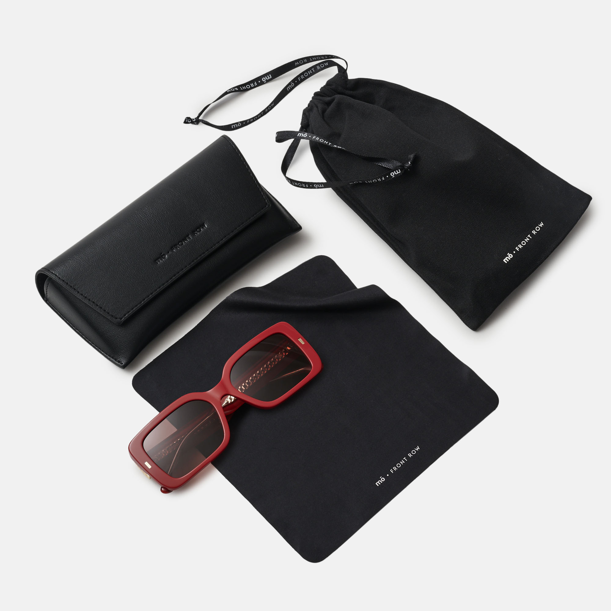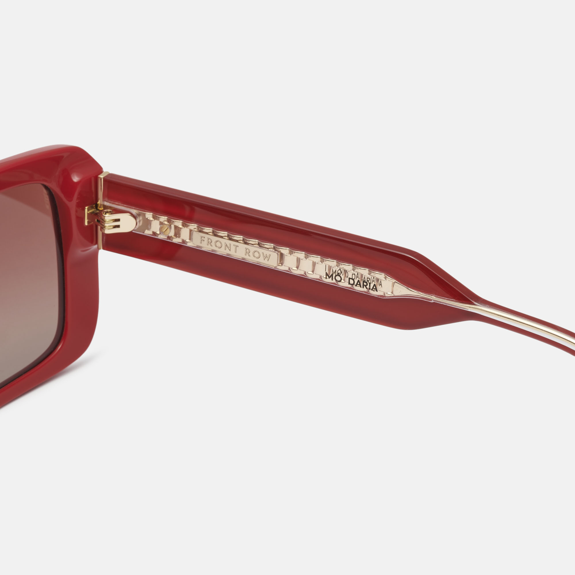 Las fafas de sol Daria pertenecen a la colección cápsula MO FRONT ROW. Un modelo de mujer deseñado en acetato negro con forma rectangular y lente degradada polarizada. Susvarillas son de acetato burgundy en las que destacan sus detalles metálicos que apoartan eleganciaVan acompañadas de un estuche exclusivo y gamuza.