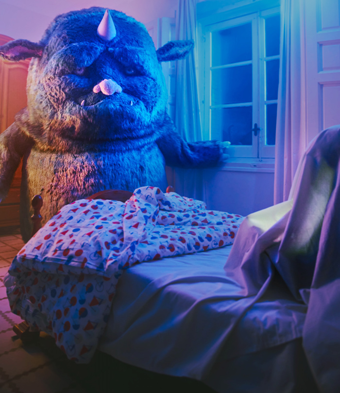 Los monstruos existen… y lo están pasando mal. Mantener despiertos a los niños y niñas forma parte del pasado para ellos y ahora tienen que conformarse con otros trabajos nocturnos menos glamurosos. ¿Por qué? Pues porque algo les ha sustituido… las pantallas. Una campaña para concienciar sobre la realidad del uso nocturno de las pantallas y cómo afecta al sueño y bienestar ocular de nuestros hijos e hijas.