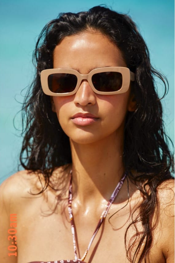 Todas las gafas se pueden combinar con un exclusivo cordón, en tono beige y hecho de eslabones de inyectado.