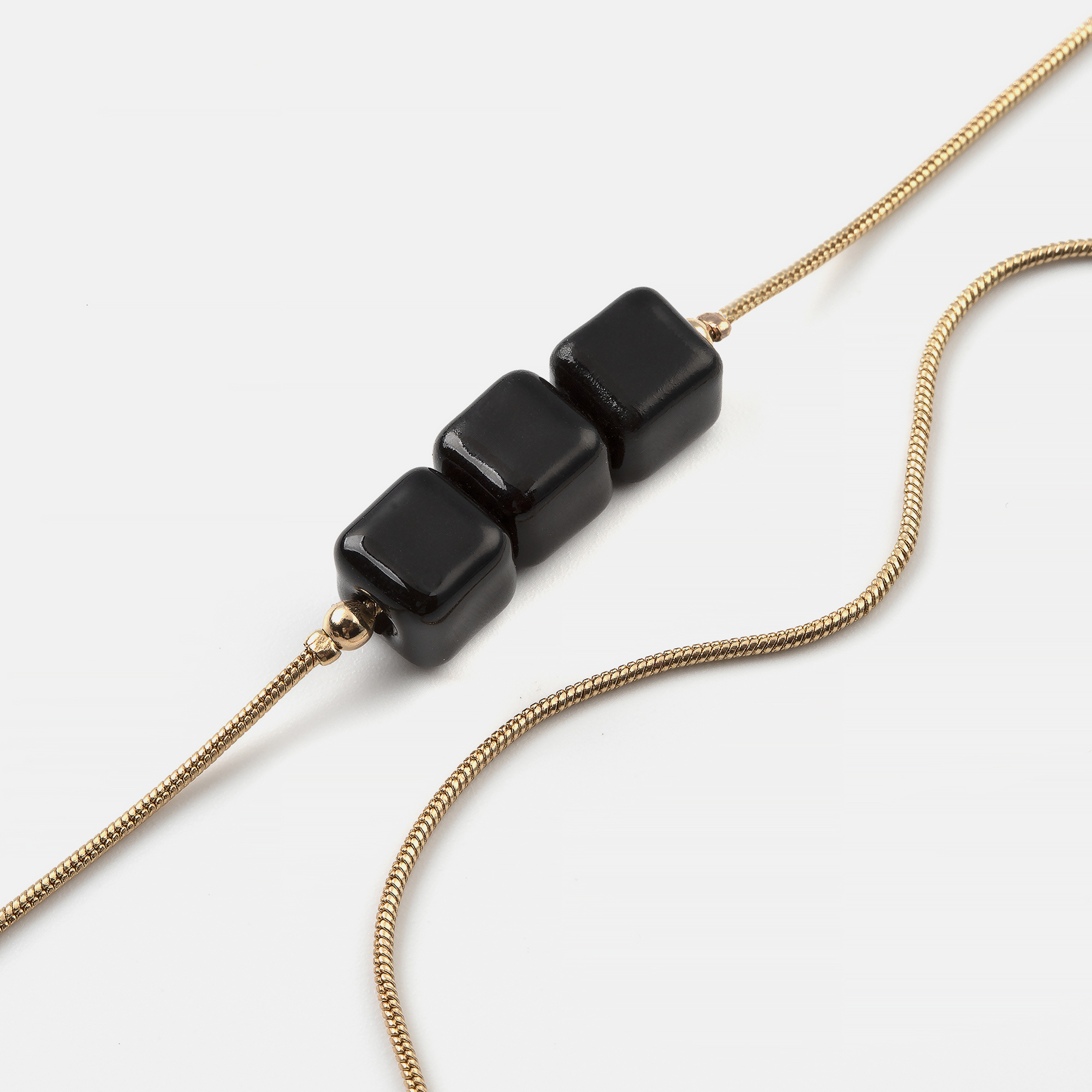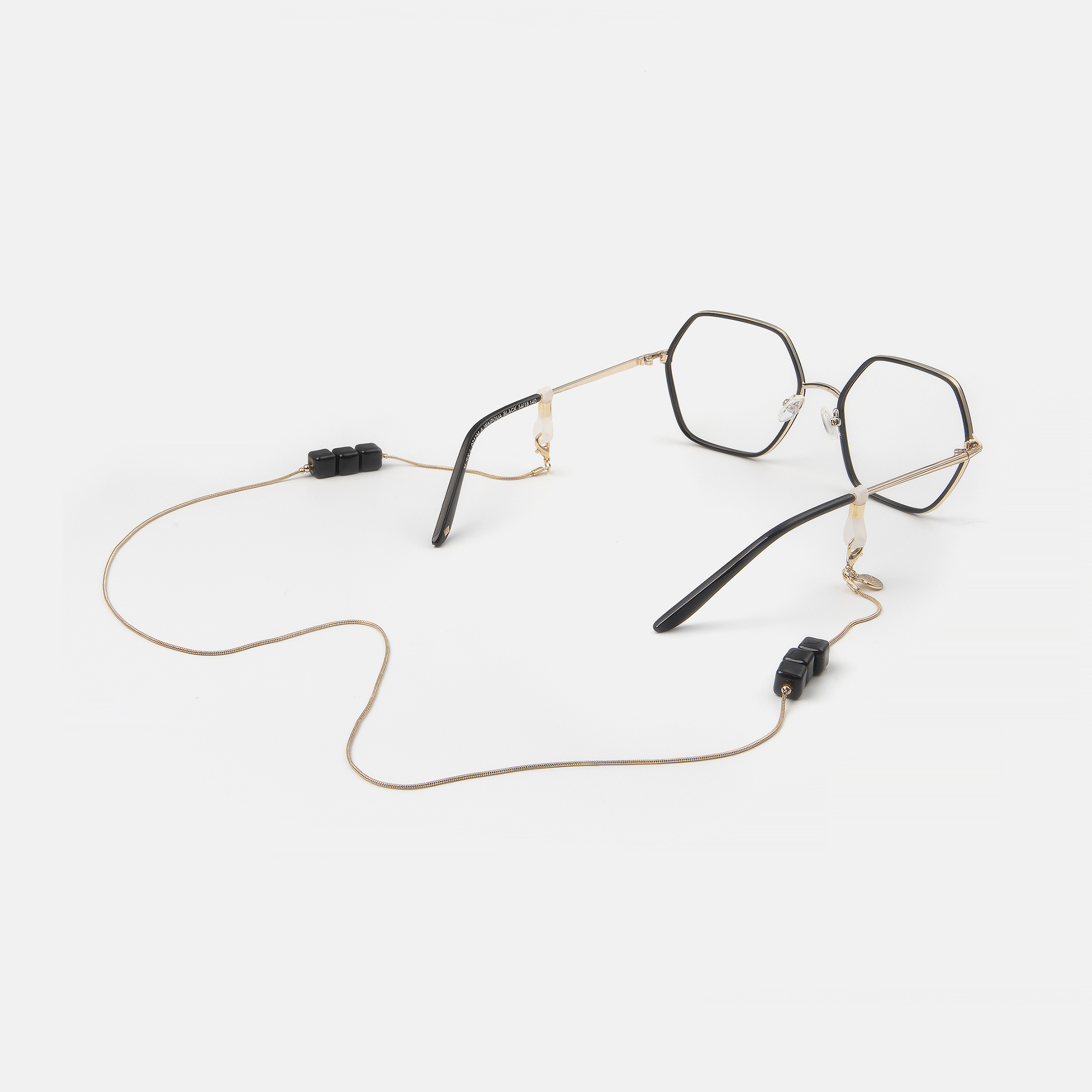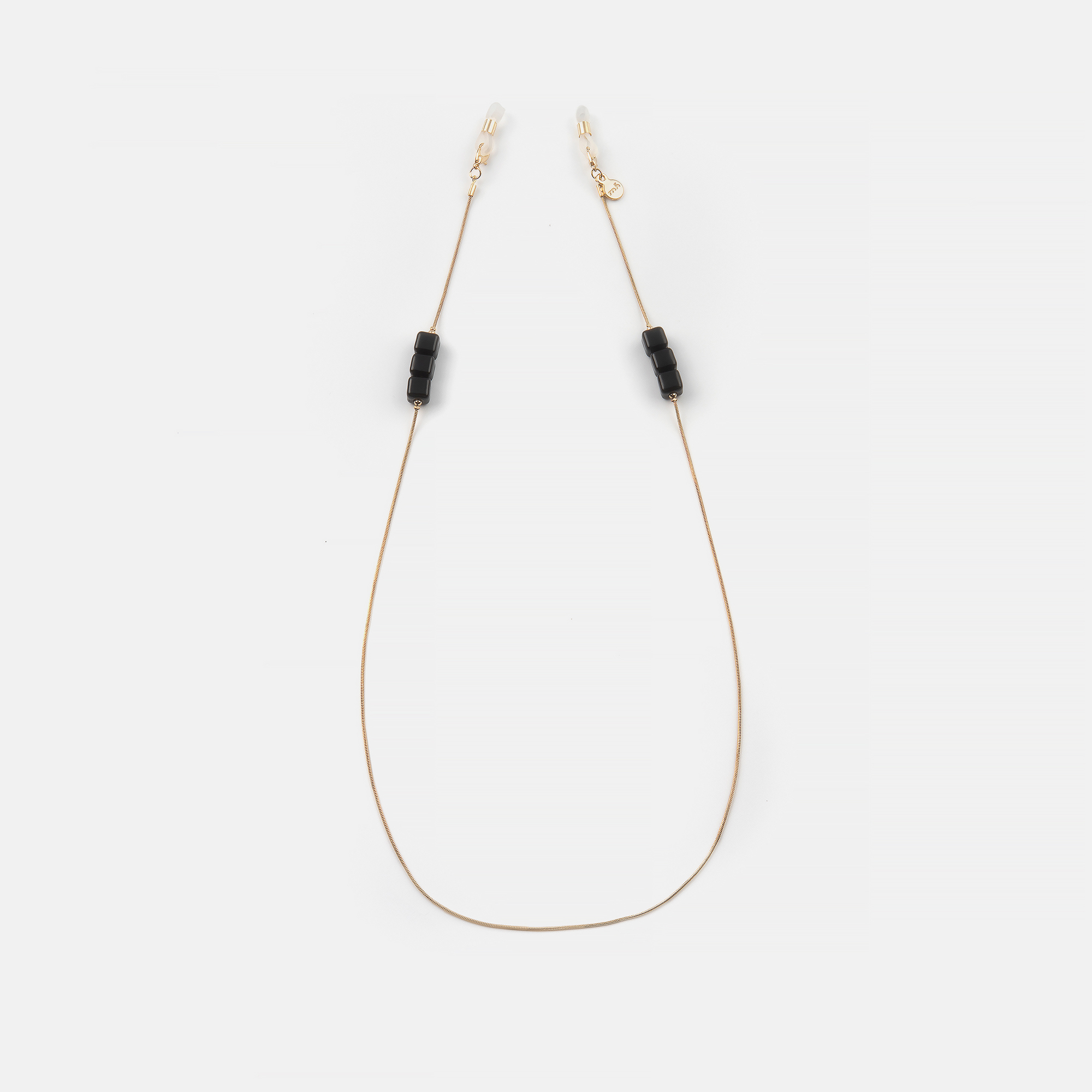 Exclusiva cadena fina, diseñada con abalorios cerámicos en tonos oscuros y cabezales ajustables. Gracias a su elegante diseño, combina con cualquier tipo de gafa, tanto de ver como de sol.Además de cuelga gafas, también se puede lucir como accesorio. Para ello, basta con retirar las gomas de los extremos y usar los mosquetones como cierre de tu nueva pulsera o collar...¡Aprovecha todas sus posibilidades!