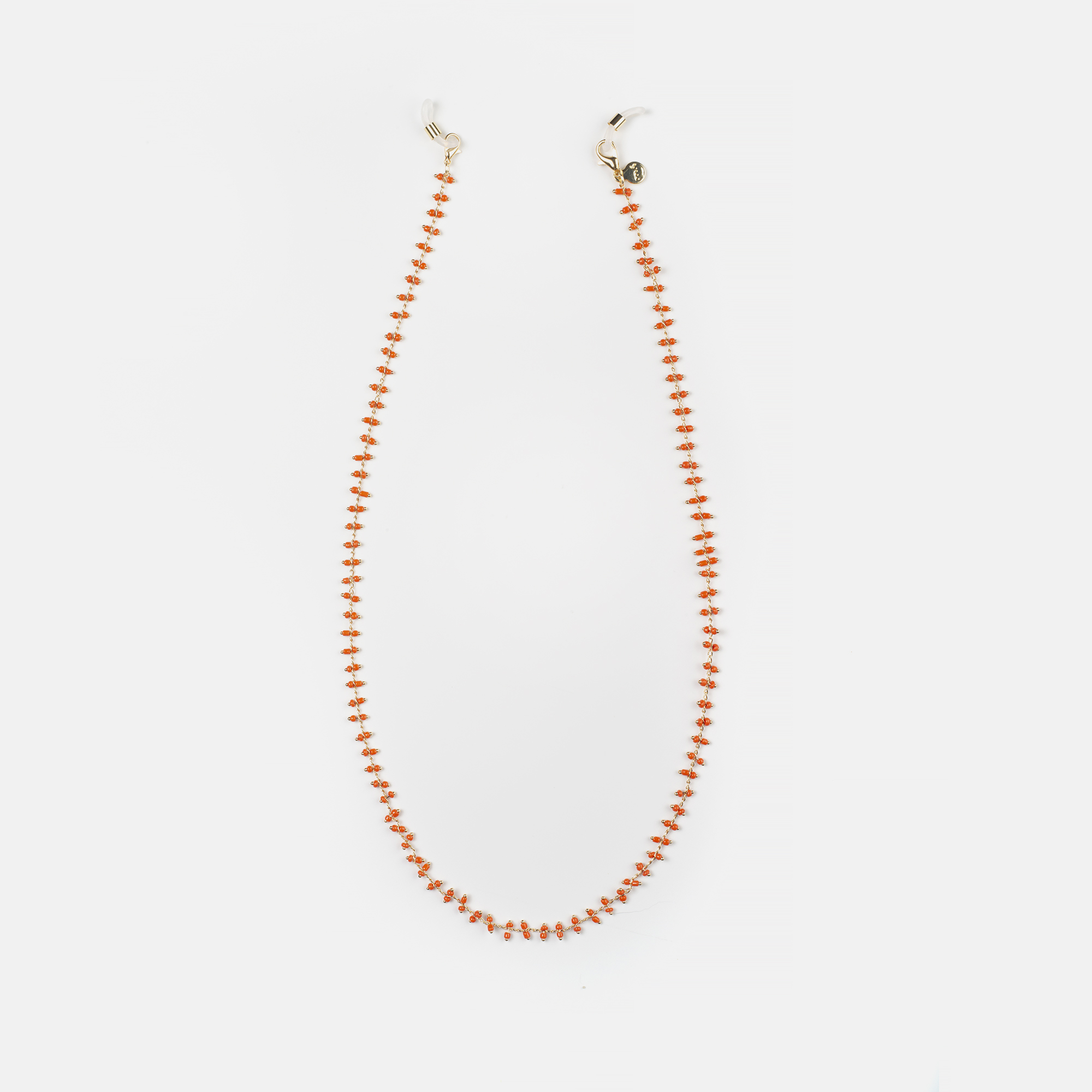 Cadena de bolitas en metal de color dorado, con cabezales ajustables. Gracias a su elegante diseño, combina con cualquier tipo de gafa, tanto de ver como de sol.