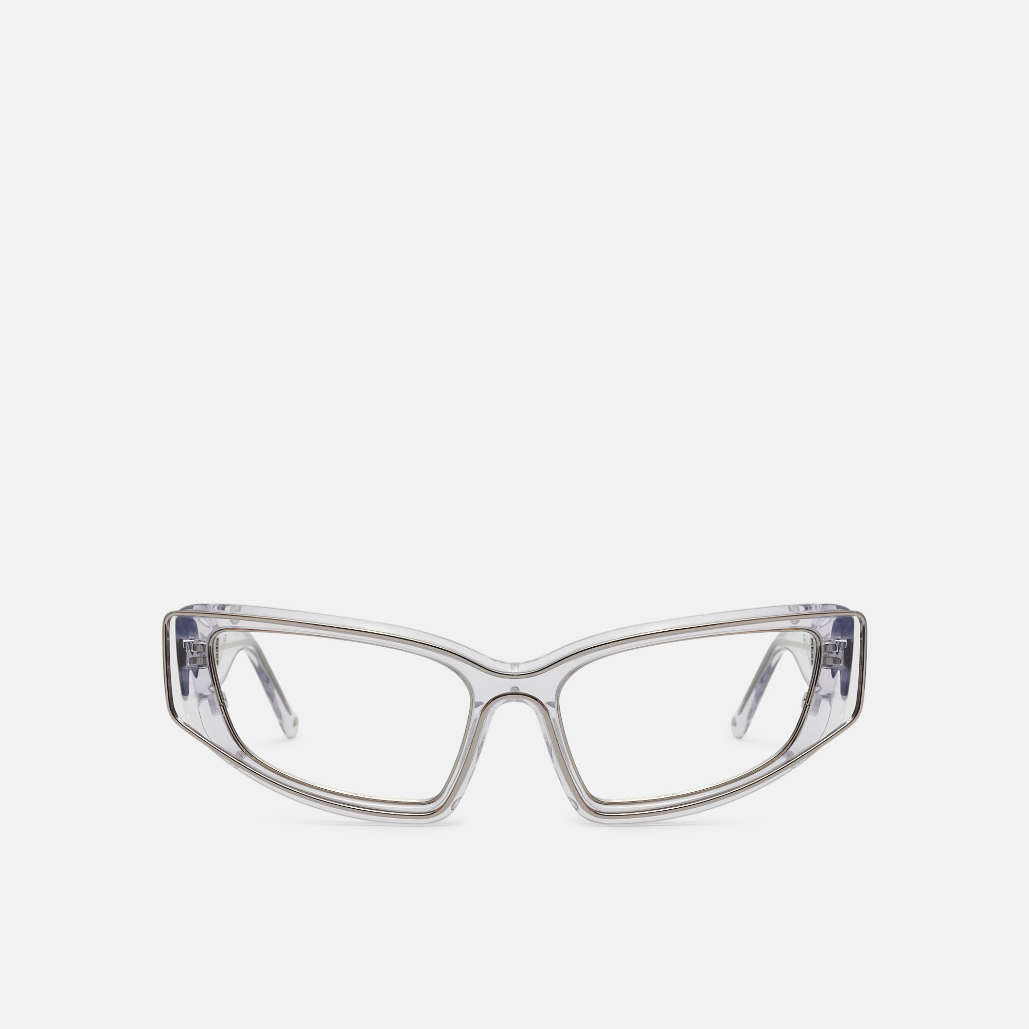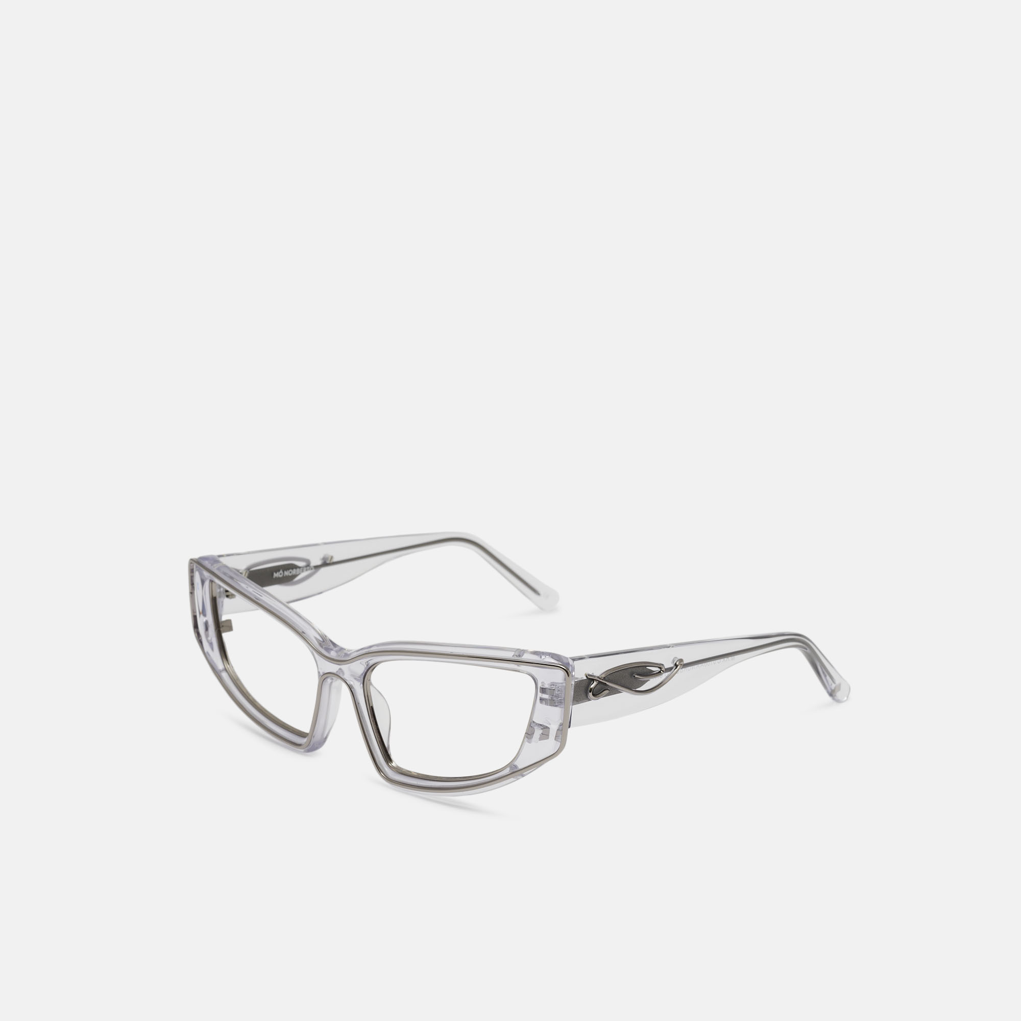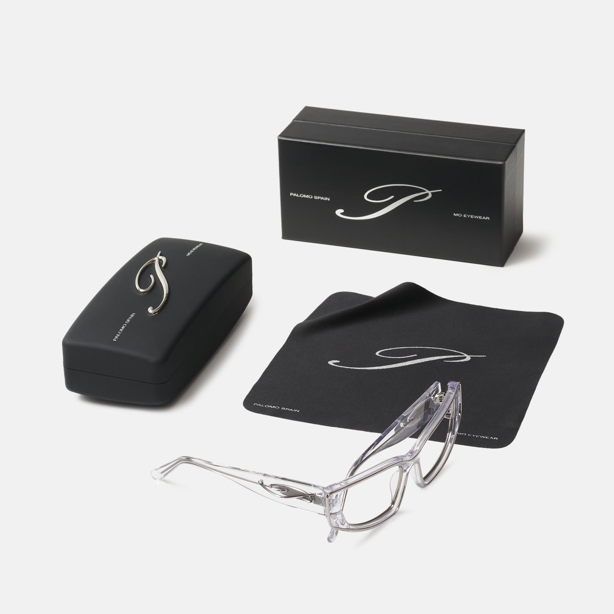 Gafas de graduado creadas en colaboración con el renombrado diseñador Alejandro Palomo de PALOMO SPAIN. El modelo MÓ ANDRÉS destaca por su audaz combinación de una doble estructura horizontal de acetato transparente y metal plateado que aportan un toque distintivo a esta colección. Además, el hilo metálico alrededor de la lente es un elemento común de esta colección . Este modelo viene acompañado de un pack especial que incluye una caja, un estuche con logo metálico y una gamuza, todo en un clásico y eleg