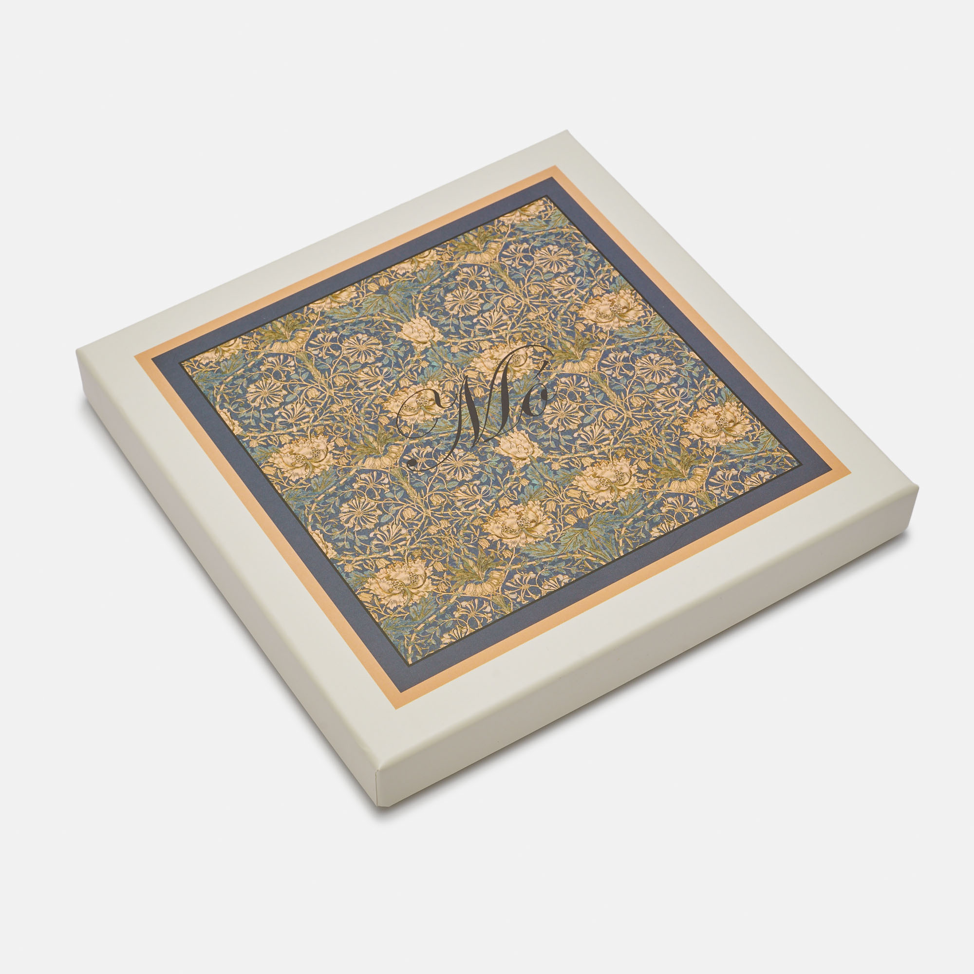 Pañuelo satinado con estampado floral de estilo victoriano en tonos azules inspirado en la colección de invierno. Perfecto para anudar al cuello, llevar como complemento en el bolso o en la muñeca como pulsera.